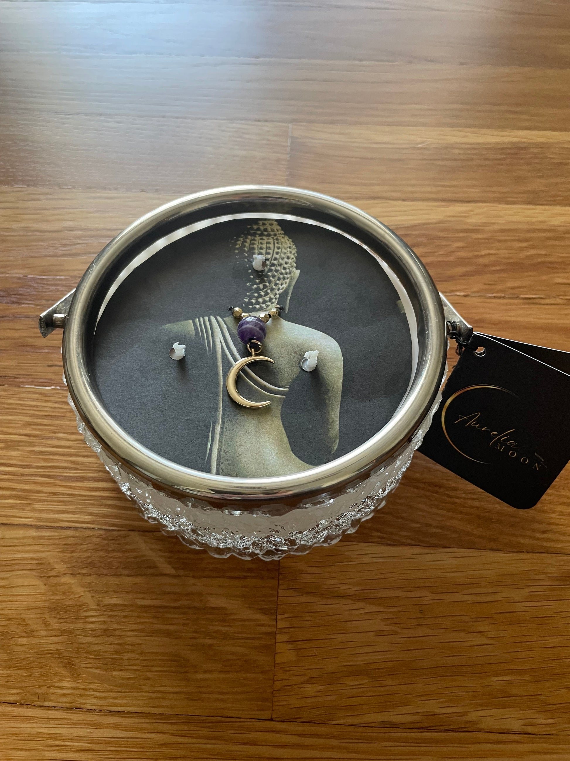 1940's Art Deco England Candy Dish w/Moon Charm & Amethyst Bead